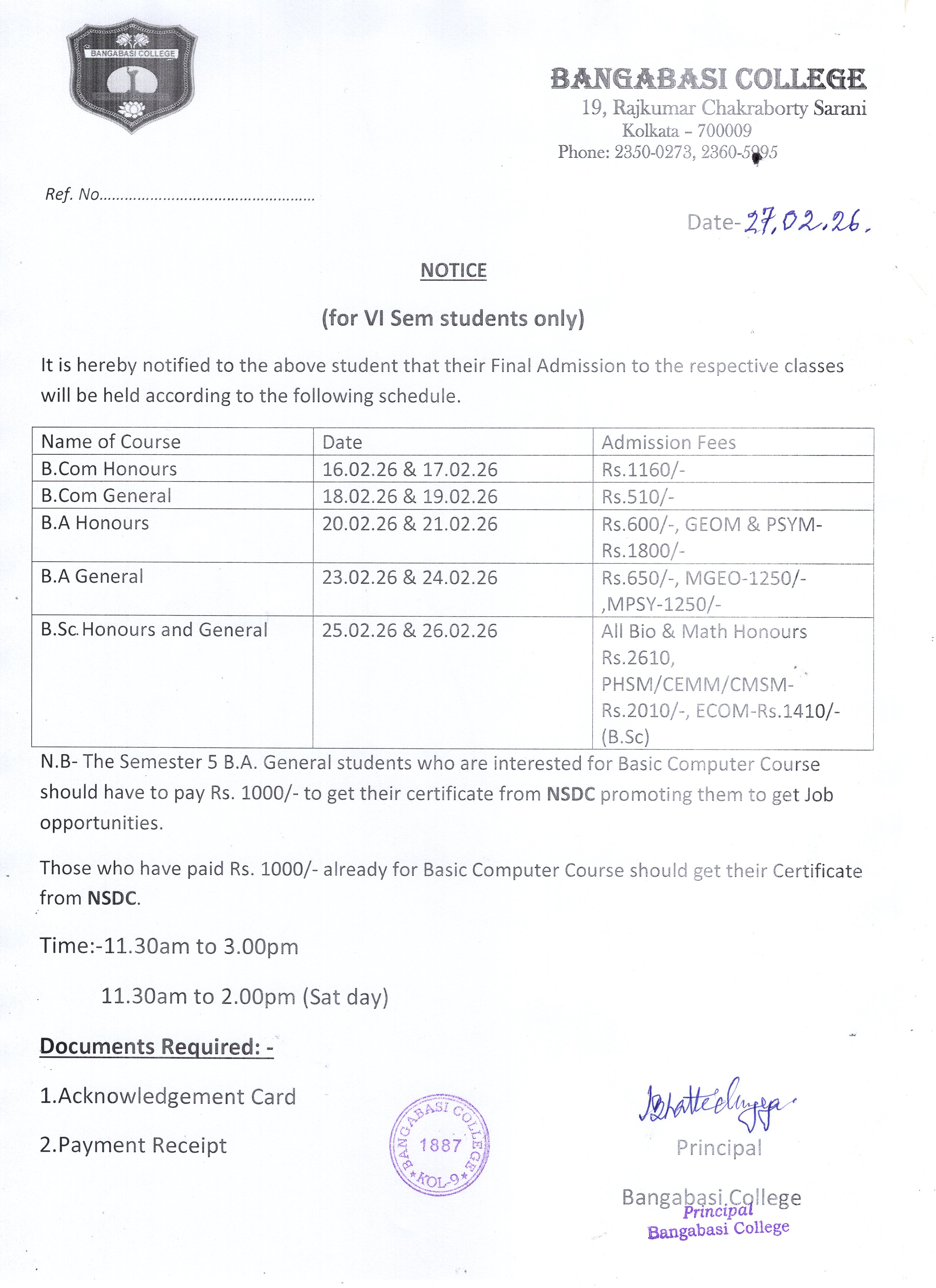 N.B- The Semester 5 B.A. General students who are interested for Basic Computer Course should have to pay Rs. 1000/- to get their certificate from NSDC promoting them to get Job opportunities.