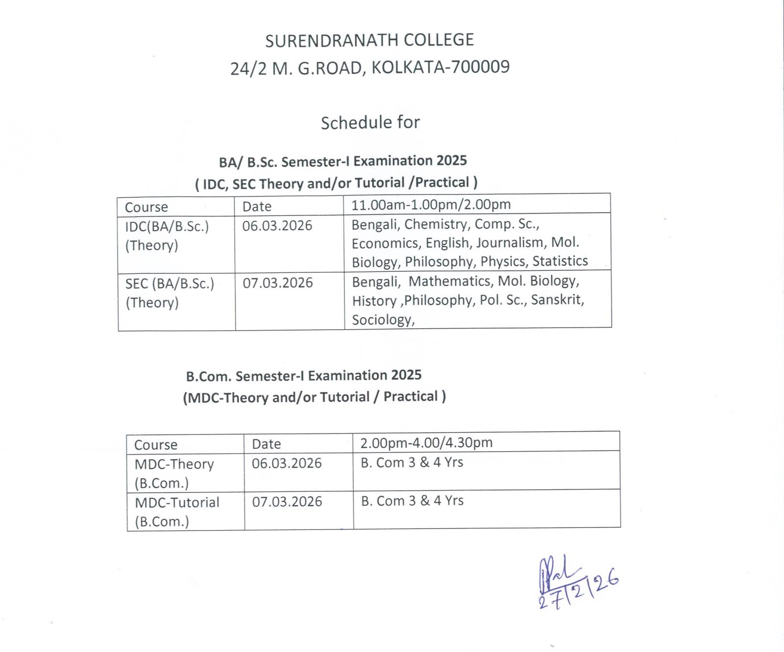 07.03.2026 | B. Com 3 & 4 Yrs |