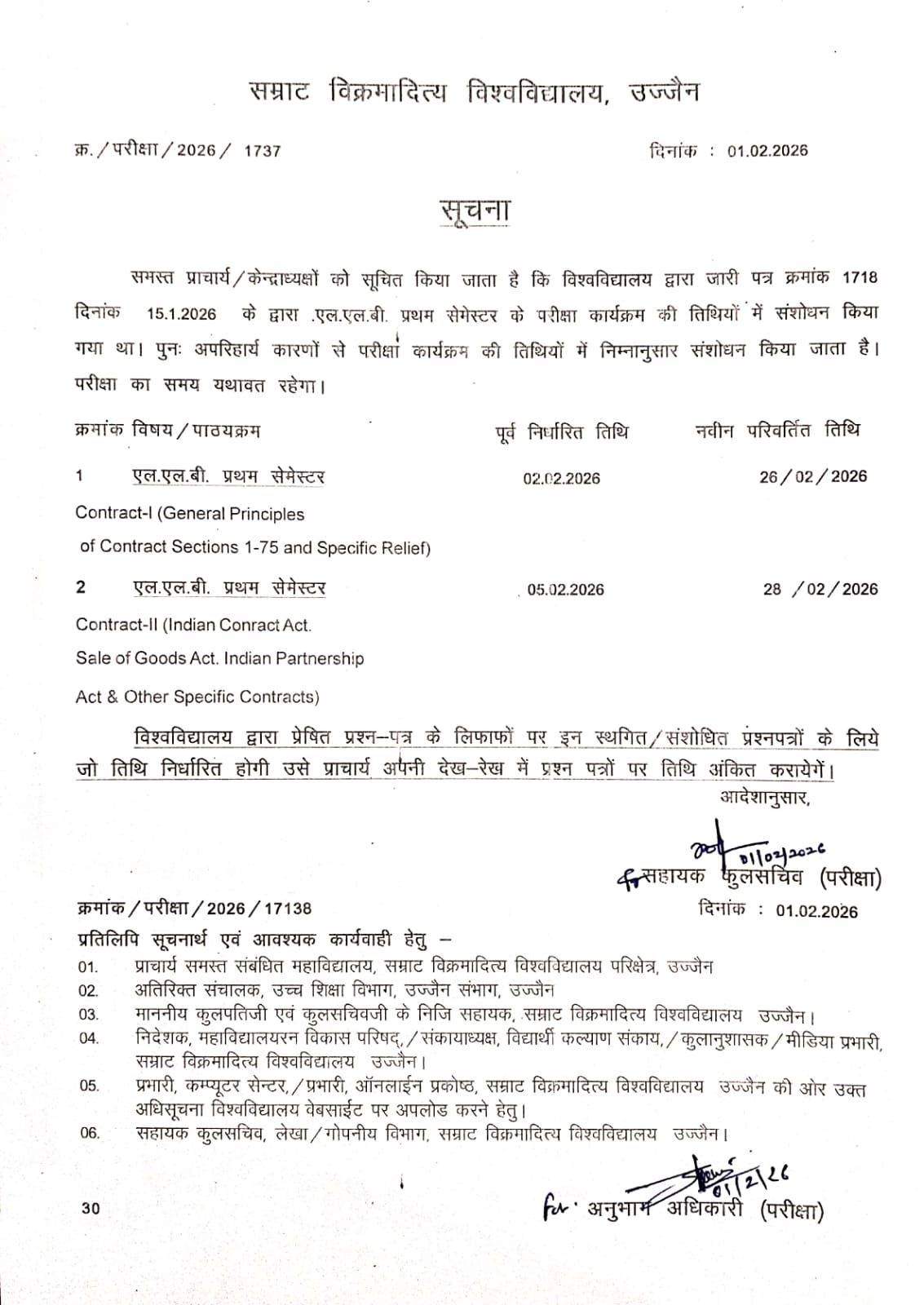 LLB 1st Semester Exam Rescheduled Notice 2026